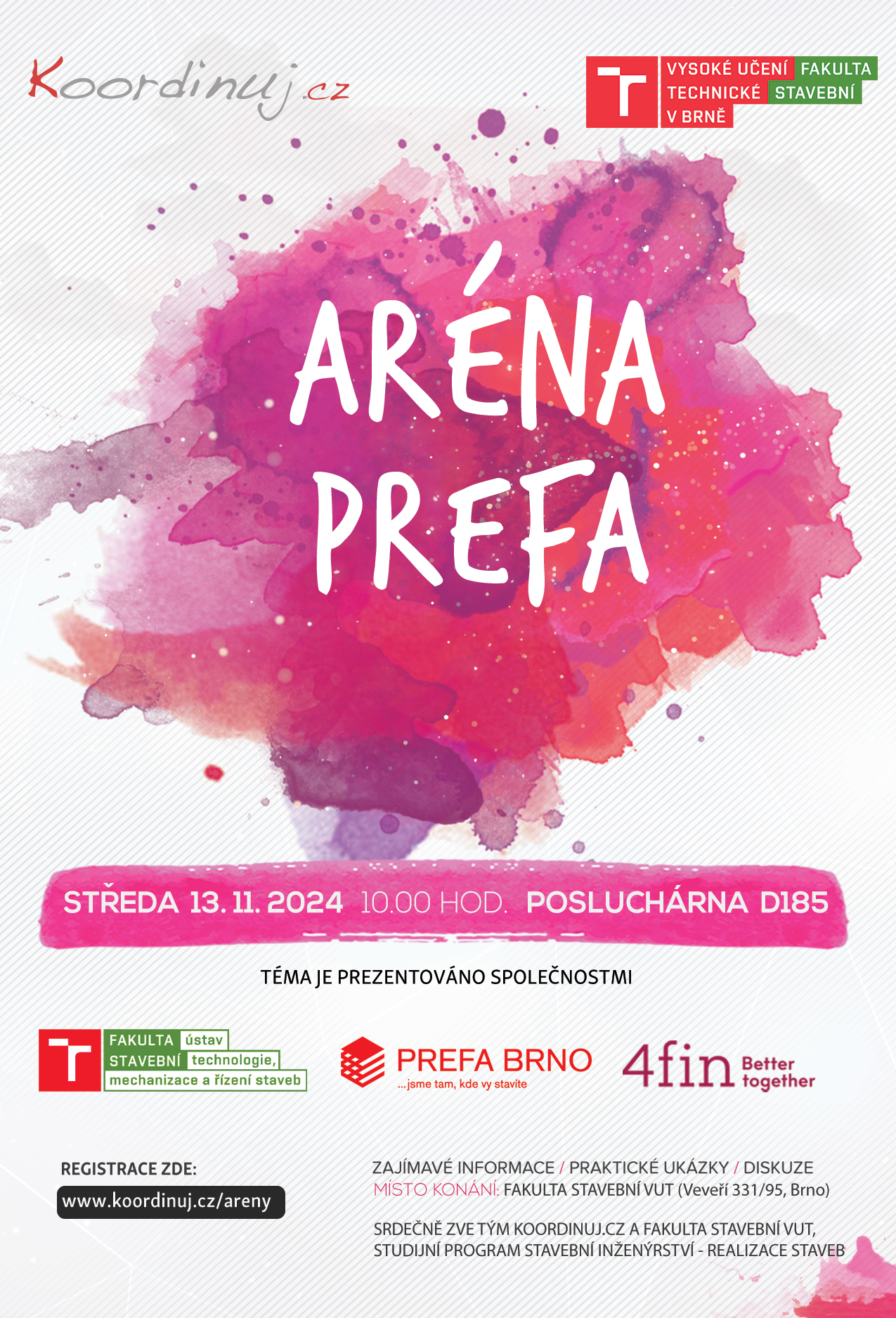 Ve středu 13. listopadu 2024 proběhne na FAST VUT v Brně již třináctá aréna projektu Koordinuj.cz s názvem "PREFA" se zaměřením na montované stavby.