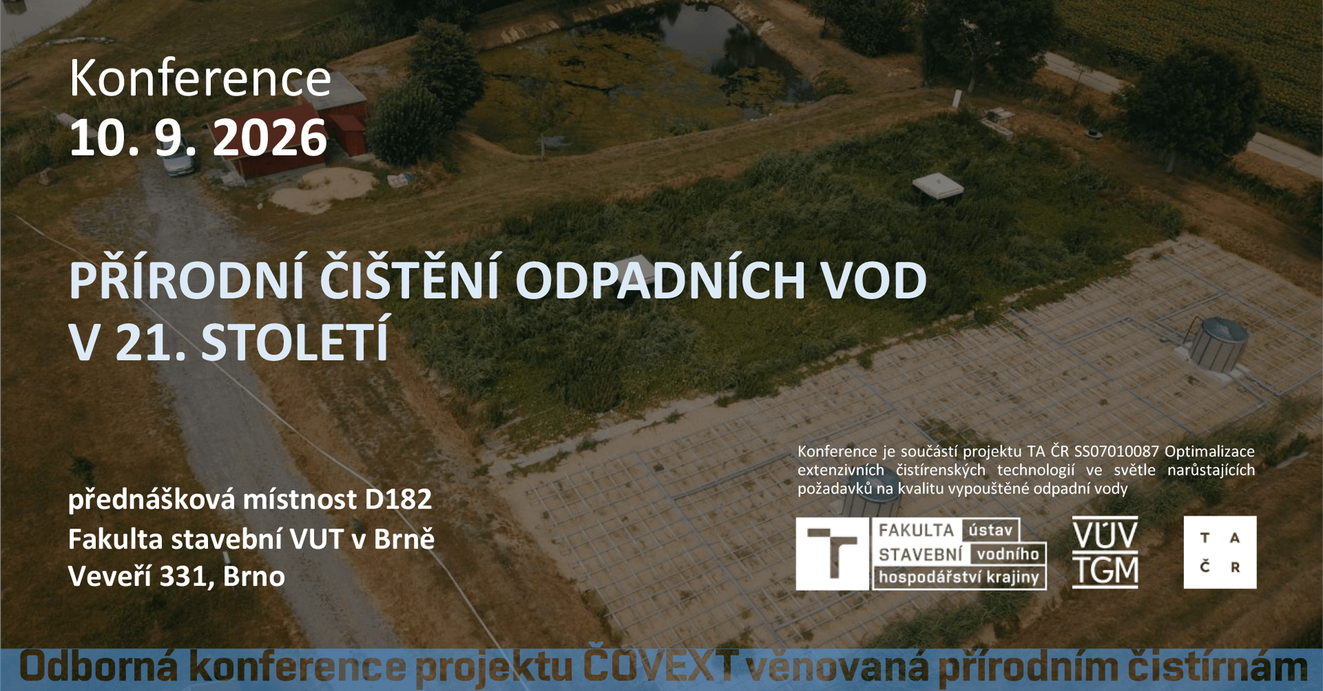 Ústav vodního hospodářství krajiny ve spolupráci s VÚV TGM, v. v. i. Vás zvou na odborné setkání zaměřené na moderní trendy v oblasti extenzivních technologií čištění odpadních vod. Konference se koná 10. září 2026 v Brně a slouží k výměně nejnovějších vědeckých poznatků i jejich diskuzi s odbornou i laickou veřejností.
