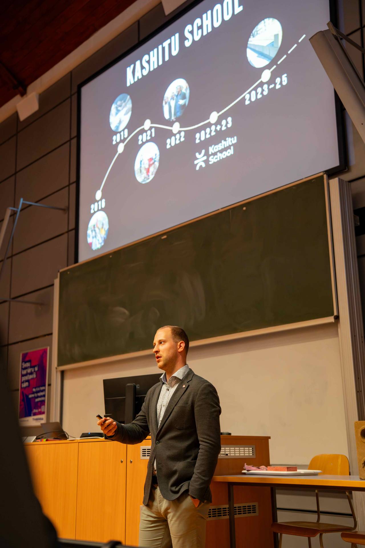 Součástí akce byla rovněž doprovodná výstava v atriu budovy D, která probíhá od 23. 3. do 10. 4. 2026. Výstava nabídla širší pohled na projekt Kashitu School a představila další aspekty jeho realizace i života v místě.